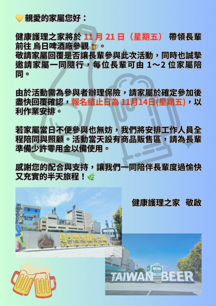 我們就是不一樣! 最完整的醫護團隊 各專科醫師定時駐診及定期支援本機構,以用心、愛心、同理心、耐心、責任心的支持服務, 團隊堅強完善。 繼續閱讀 最安全的消防設備 每間套房均採用獨立防火門隔間,防火時效最長,每層均有寬敞舒適的等待救援避難空間,讓您放心。 繼續閱讀 最舒適的綠化環境 房間寬敞舒適,綠意盎然,陽台可見落羽松窗景,隨四季變色,各樓層採不同風格布置。 繼續閱讀
